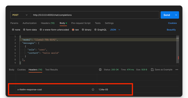 Expect to see x-litellm-response-cost in the response headers with calculated cost